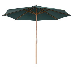 Outsunny Outsunny Garden Parasol Φ300 x 250Acm με άνοιγμα σχοινιού, 8 νευρώσεις και ξύλινο κοντάρι, σκούρο πράσινο 01-0243