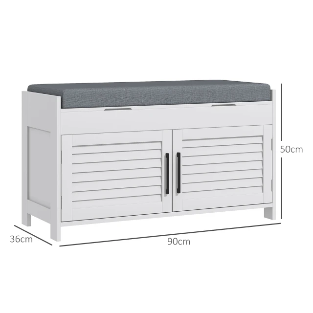 HOMCOM Παγκάκι Παπουτσοθήκη με Ρυθμιζόμενο Εσωτερικό Ράφι σε 3 Επίπεδα από MDF και Ψευδο-Λινό 90x36x50 cm Λευκό και Γκρι 837-477