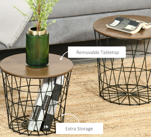 Όταν κάθε εκατοστό μετράει, σκεφτείτε να προσθέσετε ένα στρογγυλό τραπεζάκι σαλονιού στη διακόσμησή σας. Ένα στρογγυλό τραπεζάκι μπορεί να χωρέσει σε μικρές γωνιές και εσοχές, εξοικονομώντας πολύτιμο χώρο. Για παράδειγμα, το HOMCOM Retro Industrial Style Table με αποθηκευτικό χώρο είναι μια εξαιρετική επιλογή. Αυτό το στρογγυλό τραπεζάκι σαλονιού διαθέτει επιπλέον αποθηκευτικό χώρο και μετακινούμενη επιφάνεια, ενώ χαρίζει στον χώρο σας μια μοντέρνα αίσθηση χάρη στο τολμηρό industrial design του. Επιπλέον, προσφέρεται σε πολύ καλή τιμή, κάτω από 100€, και μπορεί να χρησιμοποιηθεί τόσο ως τραπεζάκι κομοδίνου όσο και ως μικρό τραπέζι φαγητού.